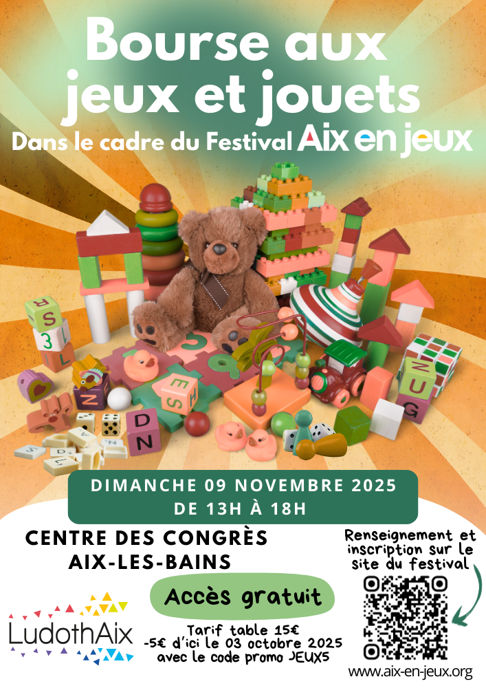 Pour la première fois, nous vous proposons de participer à une grande bourse aux jeux et jouets lors du festival Aix en jeux ! Ouverte[…]